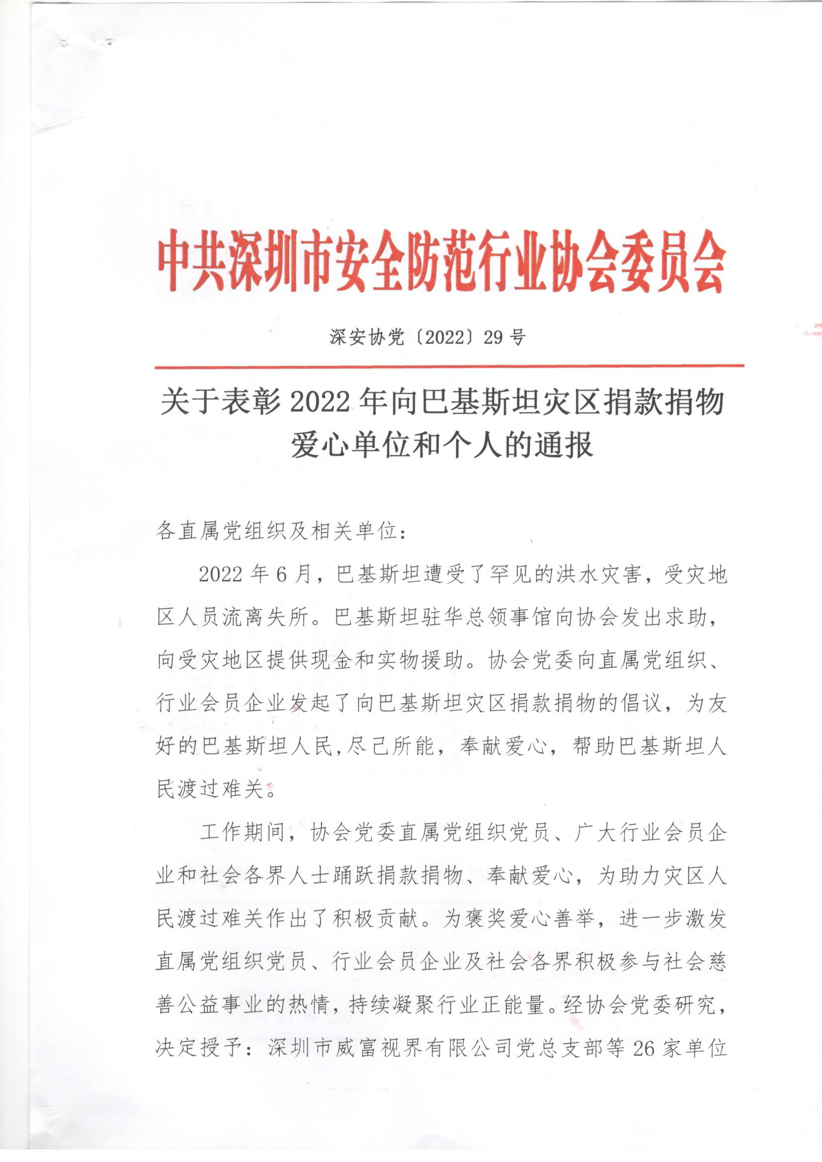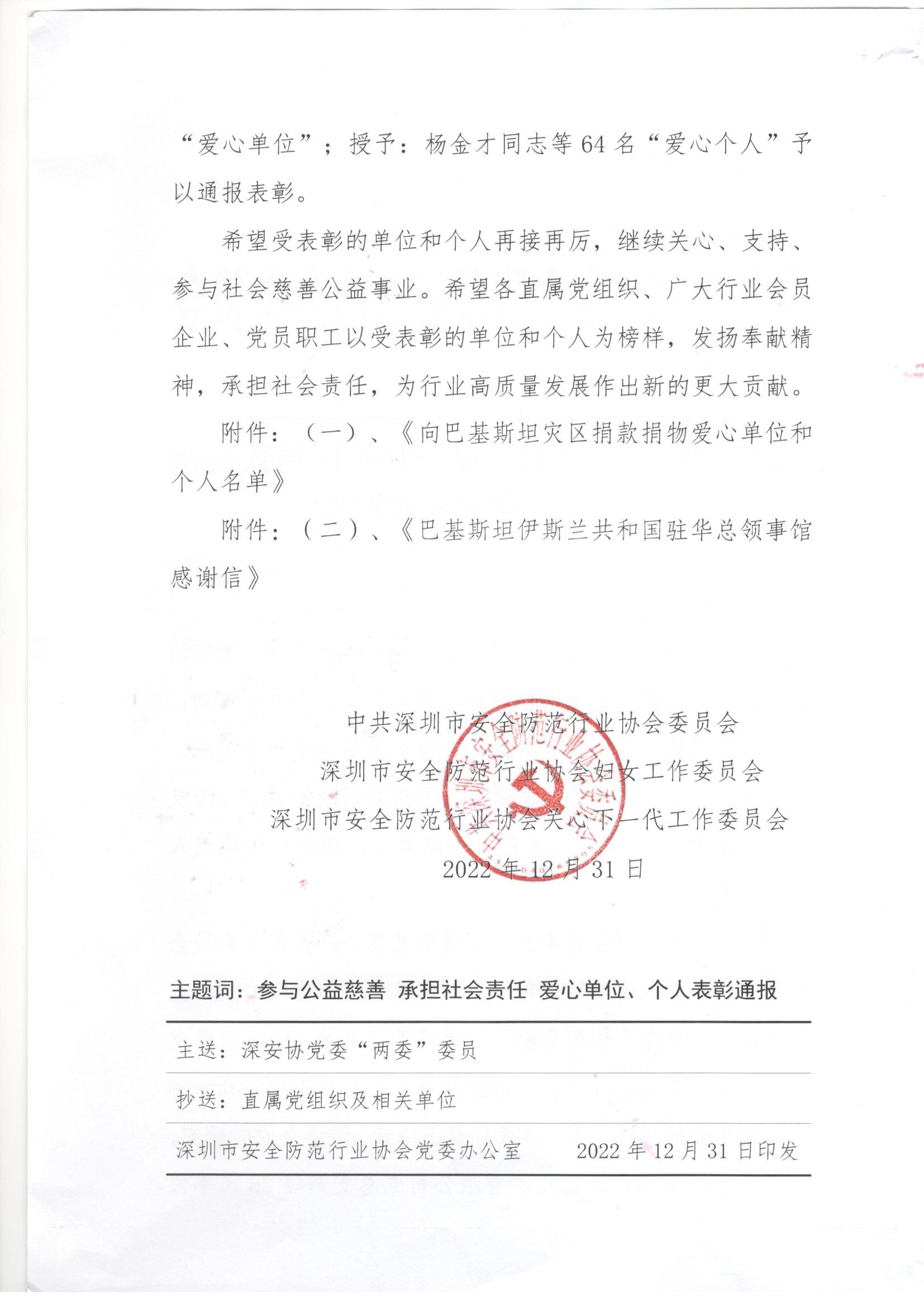 深圳市宇航光通科技有限公司:慈始于心,善踐于行;博愛長駐,人道永恒。感謝貴單位積極響應(yīng)號召,向巴基斯坦災(zāi)區(qū)人民奉獻愛心,凝聚起堅不可摧的強大正能量。謹(jǐn)向貴單位致以最誠摯的感謝和最崇高的敬意!