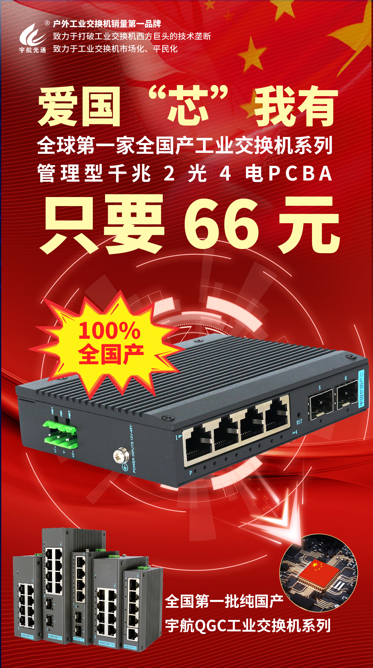 宇航工業(yè)交換機(jī)一直致力于打破工業(yè)交換機(jī)西方巨頭的技術(shù)壟斷,致力于工業(yè)交換機(jī)市場化、平民化。宇航QGC工業(yè)交換機(jī)系列產(chǎn)品的推出,是宇航工業(yè)交換機(jī)在自主研發(fā)和創(chuàng)新方面的一次重大突破,也是對國家工業(yè)發(fā)展的一次有力支持。