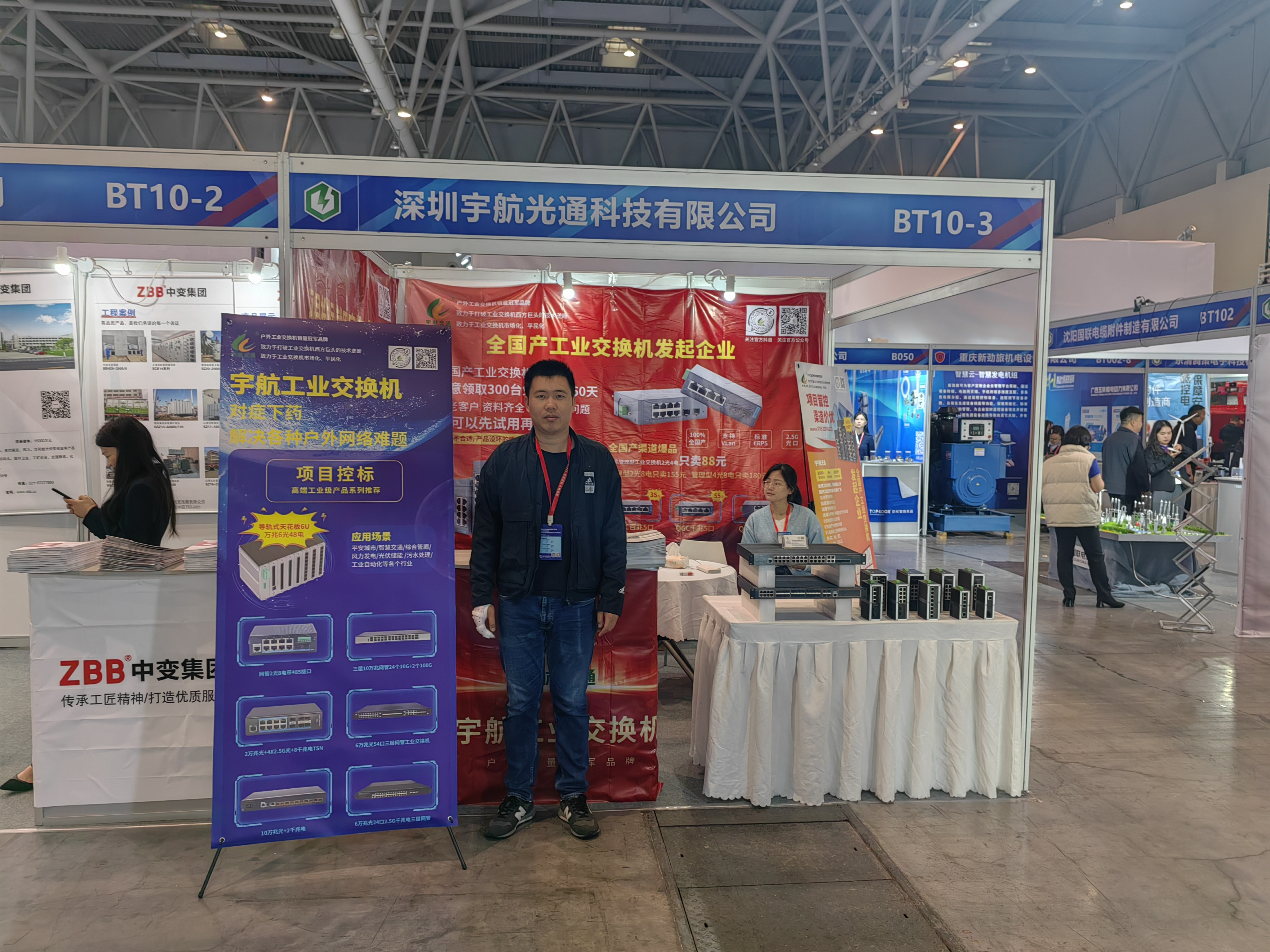 展會現場,宇航工業交換機向大家展示了全國產工業交換機、萬兆級54口模塊化插卡工業交換機,6萬兆24個2.5G電口工業交換機以及6U 6萬兆48電工業交換機等系列產品,引起了參展朋友們的廣泛關注與熱烈反響。