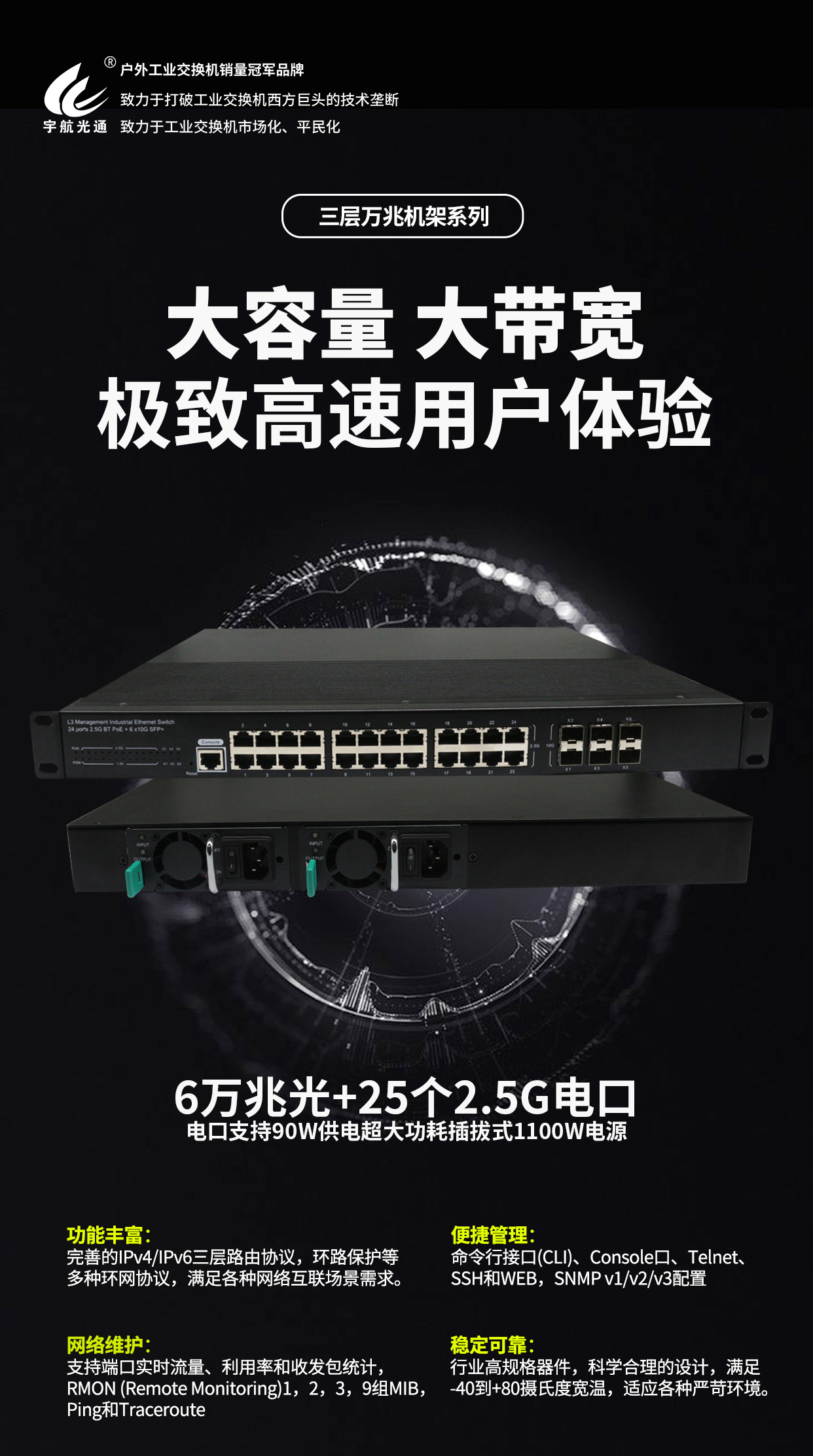 宇航,戶外工業交換機銷量冠軍品牌。宇航,致力于打破工業交換機西方巨頭的技術壟斷,致力于工業交換機市場化、平民化!