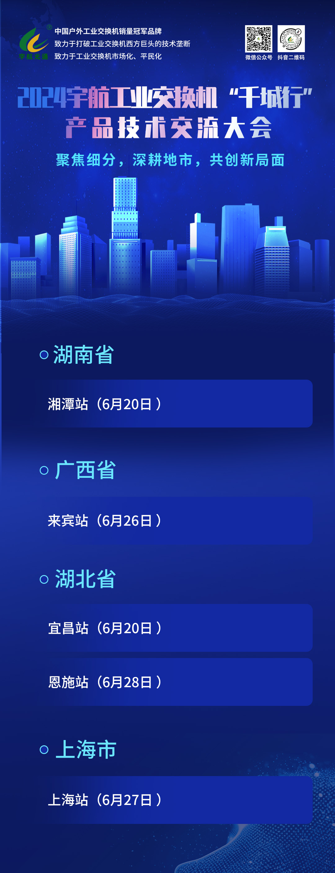 6月過半,宇航工業交換機已成功在浙江杭州、湖北襄陽、湖南衡陽與株洲、廣西防城港等地舉辦了2024宇航工業交換機千城行產品技術交流大會。同時,宇航工業交換機在武漢的2024中國(武漢)社會公共安全產品博覽會上也展現了卓越風采。這一系列活動不僅為宇航工業交換機與各地行業同仁提供了寶貴的交流與合作機會,也極大地提升了宇航的品牌知名度和影響力。