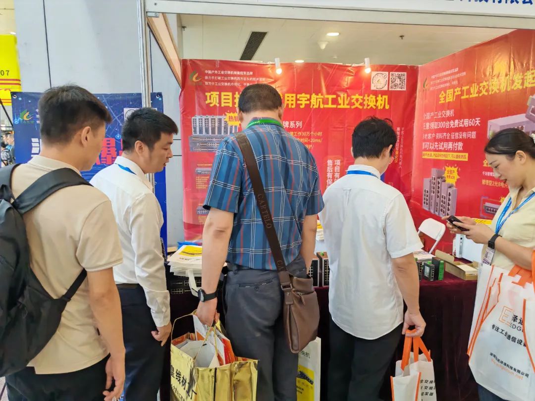 在活動現場,宇航全國產工業交換機憑借其卓越的性能和可靠性,吸引了眾多嘉賓的目光。在會場與工作人員進行熱烈的討論和交流,現場氣氛十分活躍,人流絡繹不絕。