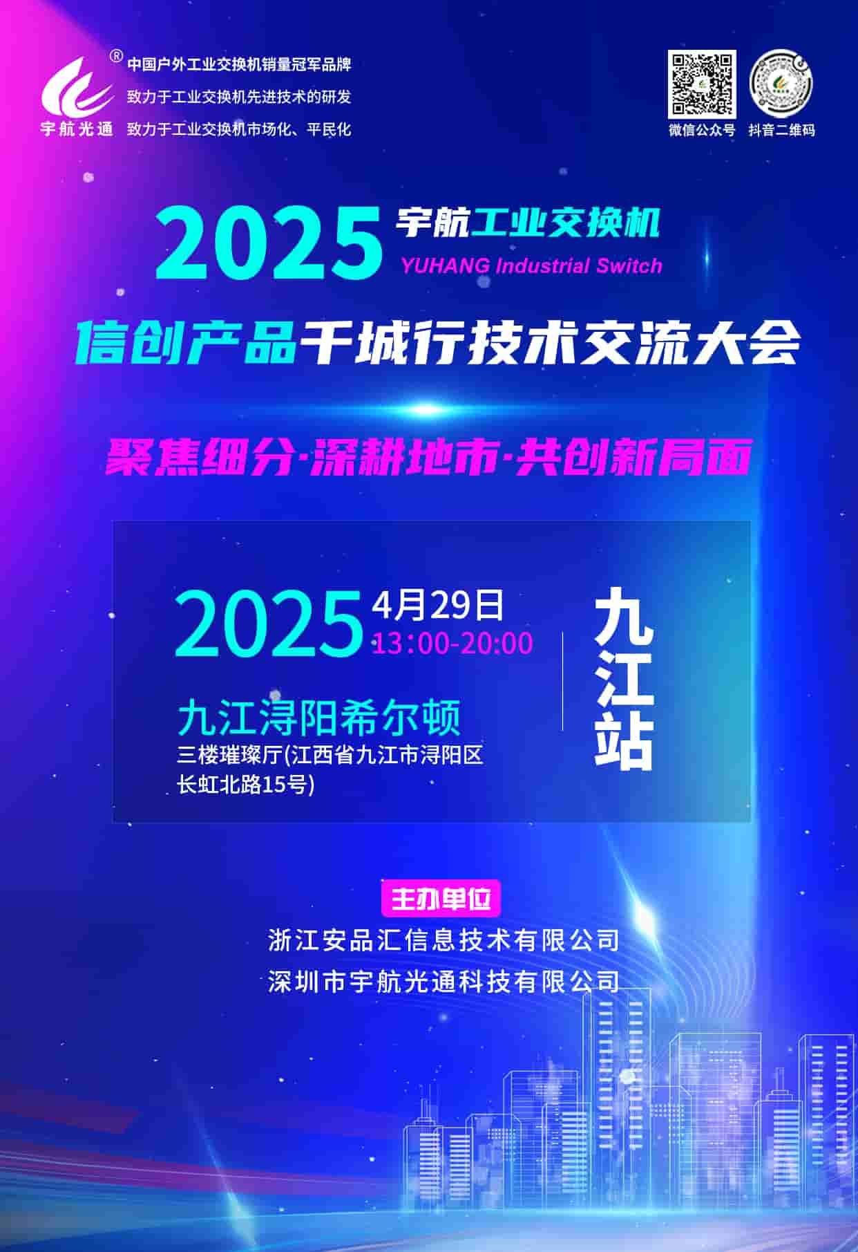 2025年4月23日至4月25日,中國戶外工業交換機銷量冠軍品牌——宇航工業交換機再度展現強勁市場布局,密集亮相全國六大行業盛會:第十五屆中國國際道路交通安全產品博覽會(武漢)、成都國際工業博覽會、東北安博會,以及江西宜春、撫州和陜西西安的2025信創產品千城行技術交流大會。