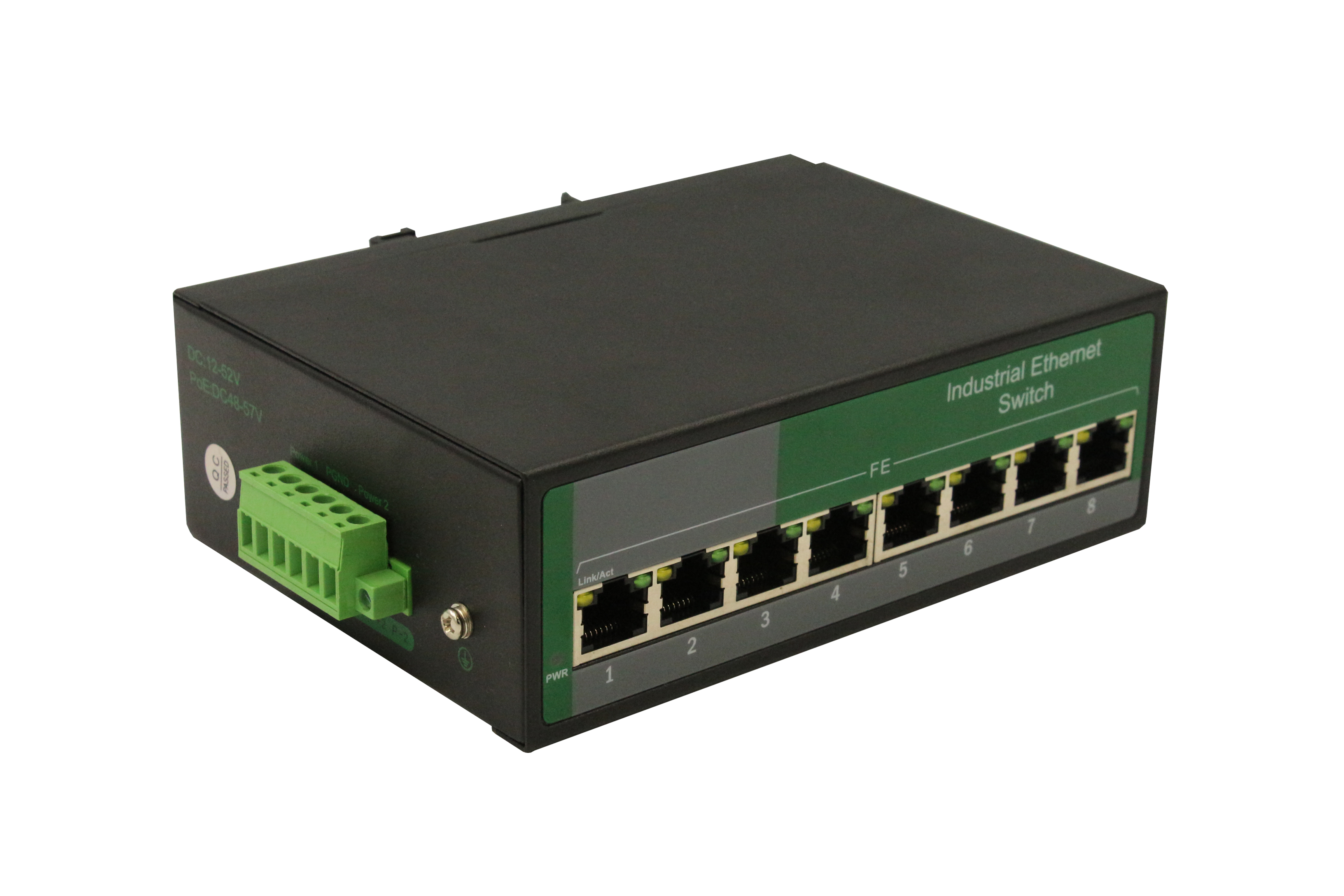8路百兆電口工業級以太網交換機,支持8個10Base-T/100Base-TX電口。產品符合FCC、CE、ROHS標準。YH200L-08F交換機具有-40℃~75℃的工作溫度,具有超強的堅固度能適應各種嚴苛環境,也可以非常方便的安置在空間緊湊的控制箱中。導軌的安裝特性、寬溫操作及擁有IP40防護等級的外殼及LED指示燈,使YH200L-08F成為一個即插即用的工業級設備,為用戶的以太網設備聯網提供可靠、便捷的解決方案。