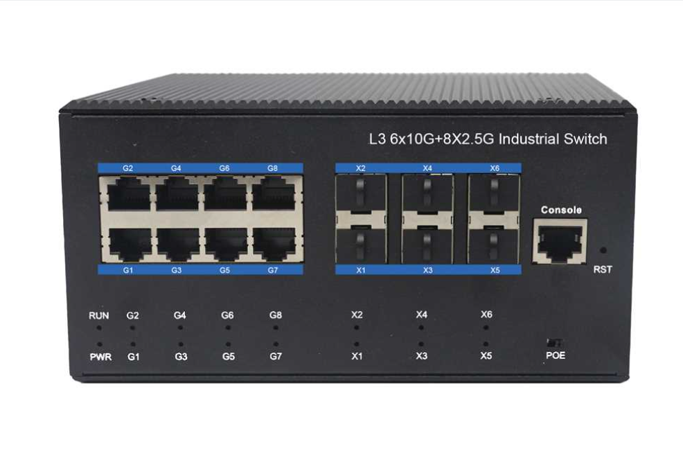 YH800-8MS6T-SFP交換機是我司推出的一款萬兆三層工業以太網交換機,產品符合FCC、CE、RoHS標準。可提供8個2.5G PoE端口,所有PoE端口符合IEEE802.3af/at/bt標準。具備先進的硬件處理能力和最豐富的業務特性。支持IPv4/IPv6 硬件雙棧及線速轉發,使客戶能夠從容應對即將帶來的IPv6 時代其提供高容量的交換能力。YH68MS6T-SFP-HN 交換機具有-40℃~70℃的工作溫度,具有超強的堅固度能適應各種嚴苛環境。導軌式安裝特性、寬溫操作,使YH68MS6T-SFP-HN 的交換機成為一個即插即用的工業級設備,為用戶的以太網設備聯網提供可靠、便捷的解決方案。