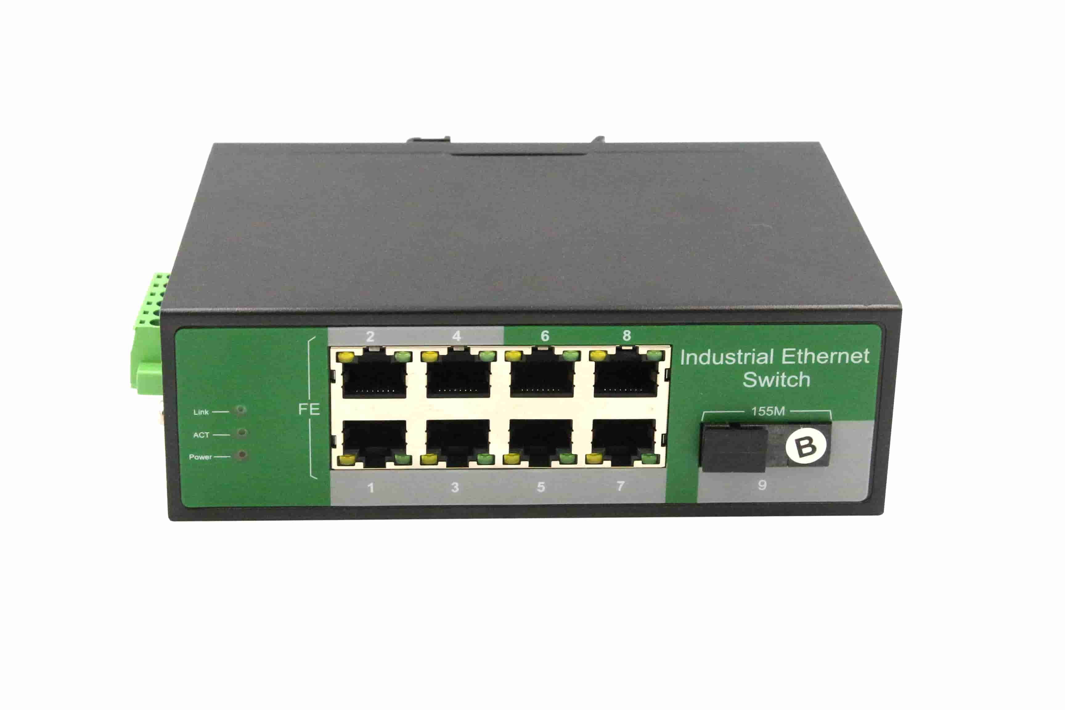 8路千兆POE電口+1路千兆FX光口工業級以太網POE交換機,支持8個10/100/1000Base-TX電口和1個1000Base-X光口。產品符合FCC、CE、ROHS標準。RDL18GP交換機具有-40℃~75℃的工作溫度,具有超強的堅固度能適應各種嚴苛環境,也可以非常方便的安置在空間緊湊的控制箱中。導軌的安裝特性、寬溫操作及擁有IP40防護等級的外殼及LED指示燈,使RDL18GP成為一個即插即用的工業級設備,為用戶的以太網設備聯網提供可靠、便捷的解決方案。