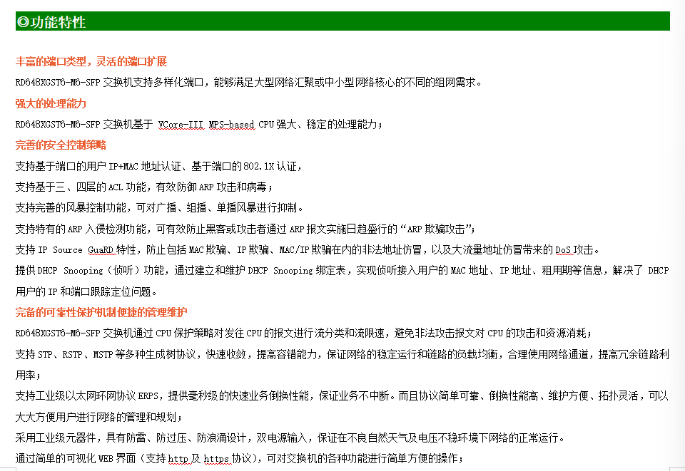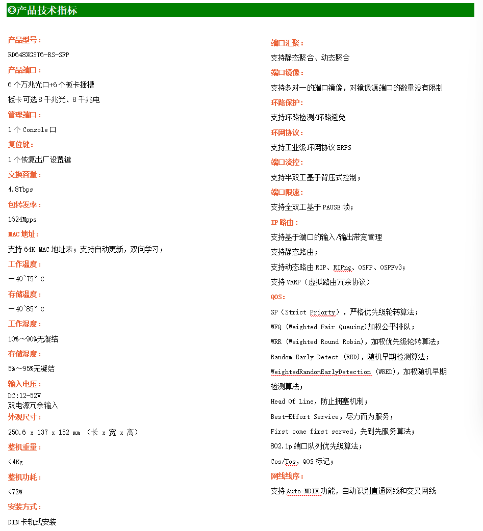 ●網(wǎng)絡(luò)冗余:支持STP/RSTP/MSTP,支持ERPS(自愈時(shí)間<20ms)