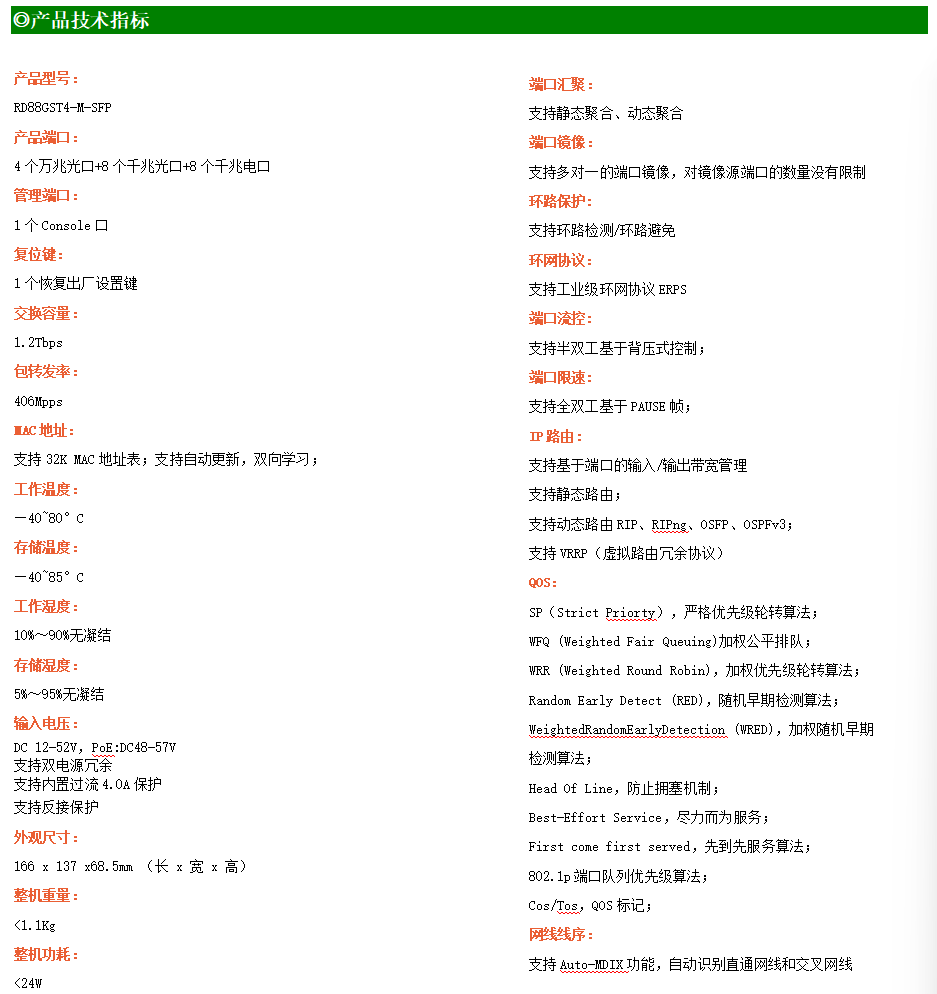 ●接口規(guī)格:4個萬兆光口+8個千兆光口+8個千兆電口
