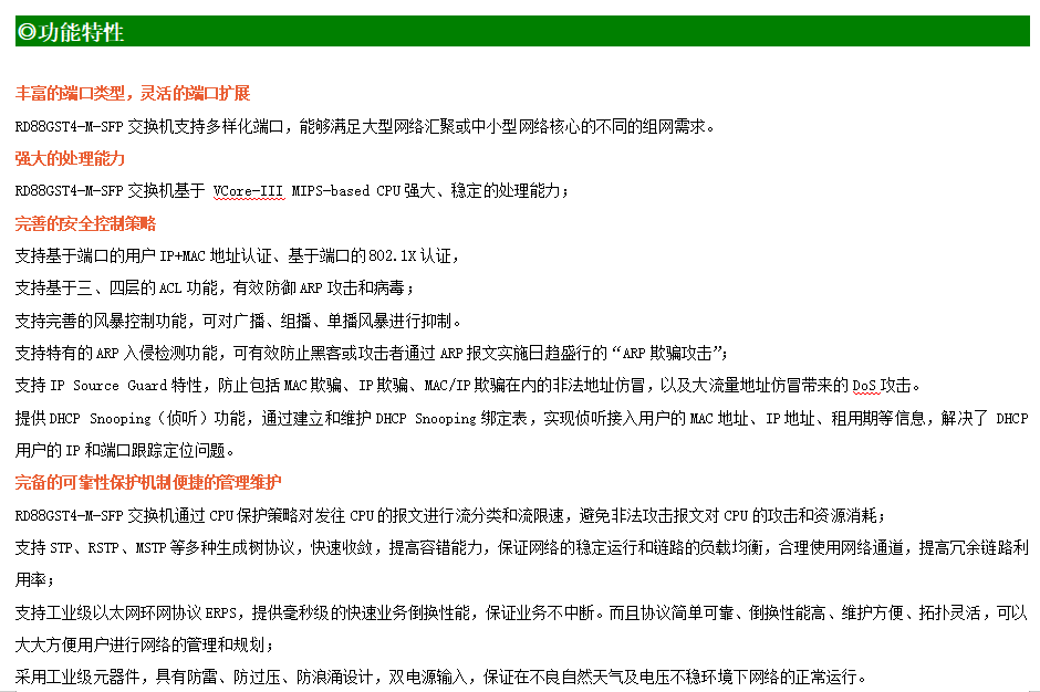 ●管理功能:支持WEB、CLI、SNMP等多種管理方式