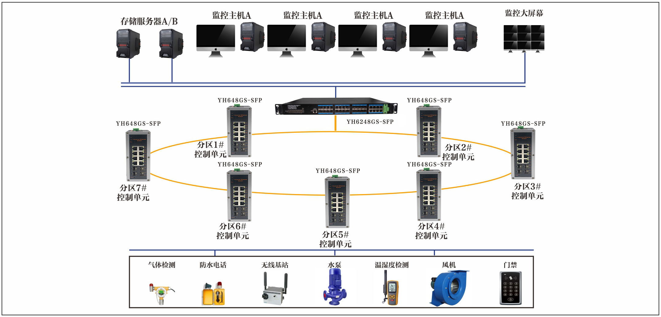 宇航在管廊監控與報警系統解決方案中采用了YH6248G4TS,YH648GS,綜合管廊監控與報警系統基于城市綜合管廊工程技術規范等標準開發,系統采用物聯網架構,模塊化設計,滿足分階段施工運行,實時環境,出入口等進行全方位在線檢測與監控,實現綜合管廊檢測與監控、運維化、自動化,保障管廊內部環境、設備、運維人員的安全。