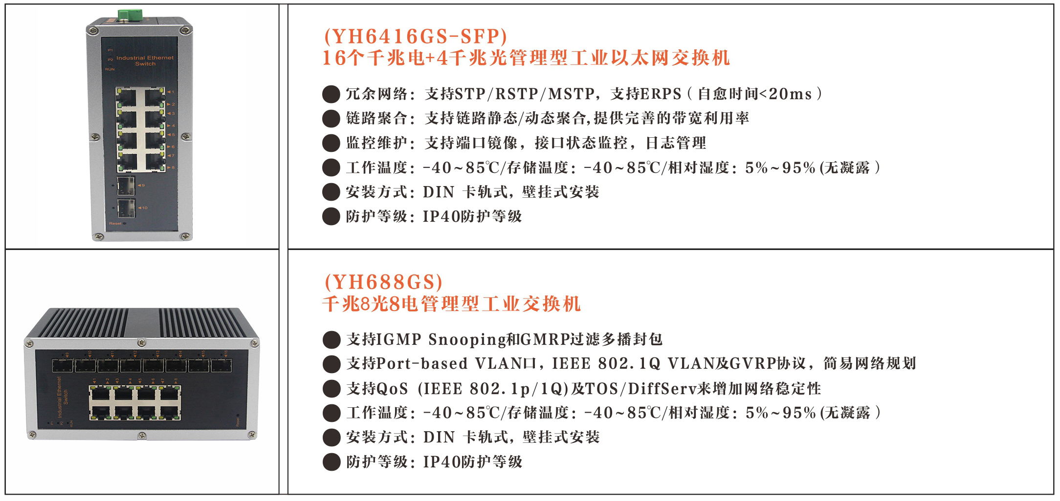 宇航在鋼鐵自動化生產線監控解決方案中采用了YH6248GS-SFP,YH688GS,YH6416GS-SFP工業以太網交換機構筑各個車間內部通信網絡,在車間內部通過YH628GS千兆工業以太網構筑環網,針對實際的站點進行合理的分布,通過虛擬局域網技術對各個車間之間的數據進行邏輯隔離,保證通信的安全性。